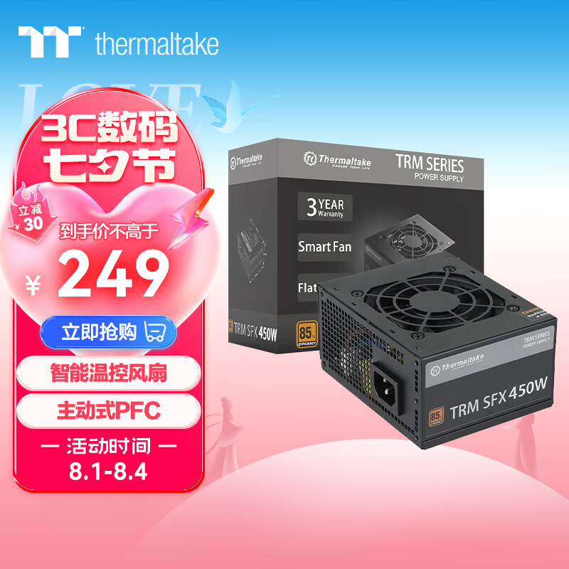 Thermaltake(Tt)额定450W TRM SFX 450 电脑电源(智能温控风扇/主动PFC/小尺寸/无转接架)价格:249.00元!