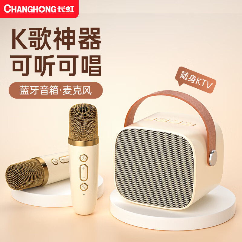 长虹L1话筒音响一体麦克风双喇叭无线蓝牙唱k歌儿童卡拉OK户外家庭ktv套装奶油白【双话筒】价格:69.00元!