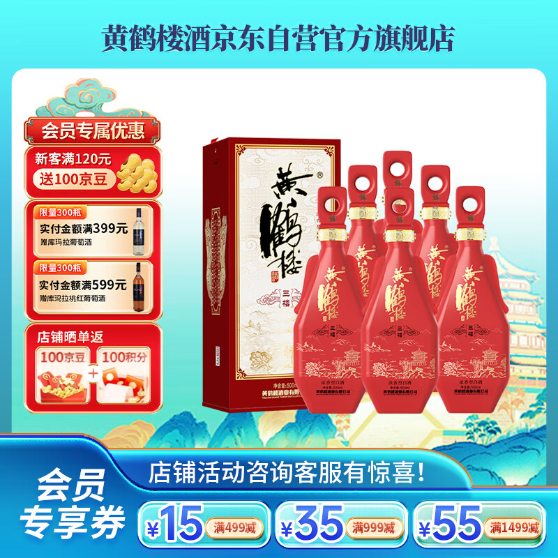 黄鹤楼酒 更上层楼 三楼 浓香型白酒 52度 500ml*6瓶 整箱装价格:1260.00元!