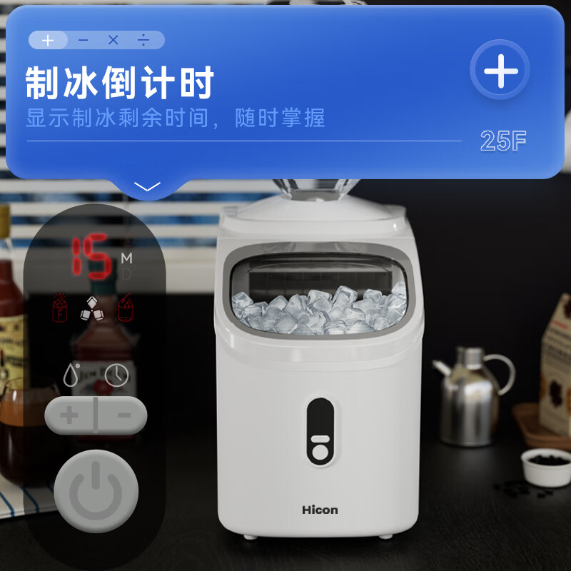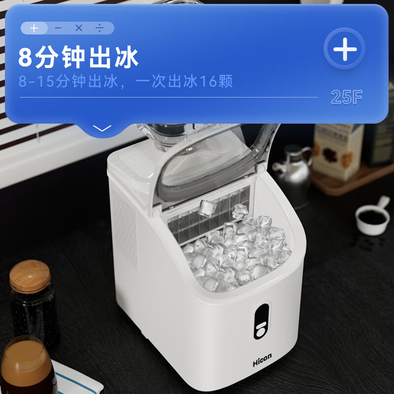 惠康制冰机家用迷你小型宿舍全自动小功率大容量家用冰沙鸡尾酒调制快速出冰20KG方块冰HZB-25F白色价格:499.00元!