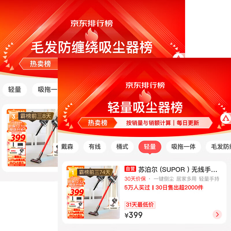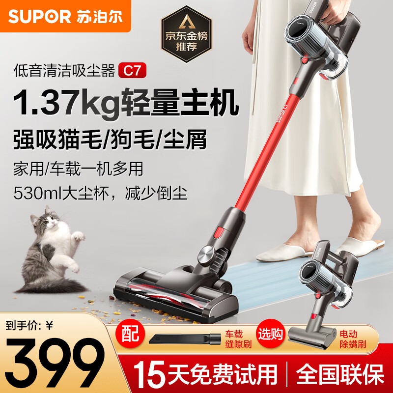 苏泊尔 (SUPOR ) 无线手持吸尘器家用大吸力车载便携立式充电 宠物猫毛狗毛地毯一键倒尘VCS67A-C7价格:429.00元!