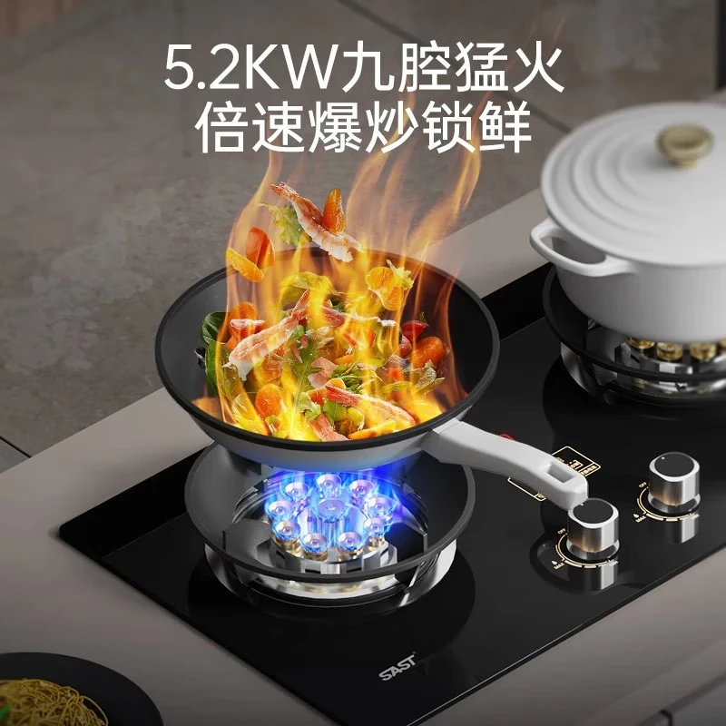 先科(SAST)燃气灶天然气煤气灶双灶家用灶具嵌入式台式两用玻璃灶台 【聚能方盘】5.0KW双九腔猛火+铜盖 (液化气)价格:599.00元!