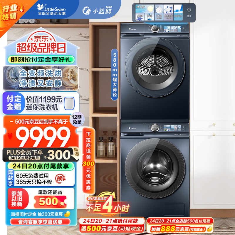 小天鹅(LittleSwan)洗烘套装 10KG滚筒洗衣机+热泵烘干机 超薄全嵌【小蓝鲸青春MAX全变频】TG100V86PLUS+88PLUSMAX价格:10499.00元!