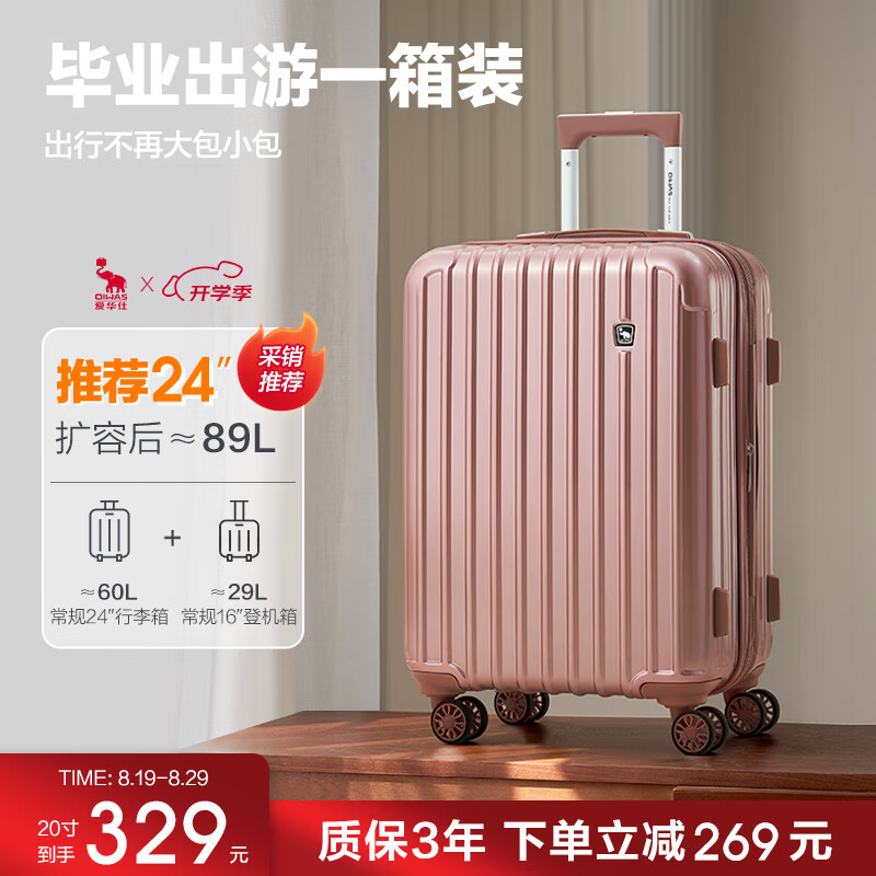 爱华仕行李箱可登机20英寸女小型拉杆箱男旅行箱可扩展密码箱皮箱玫瑰金价格:598.00元!