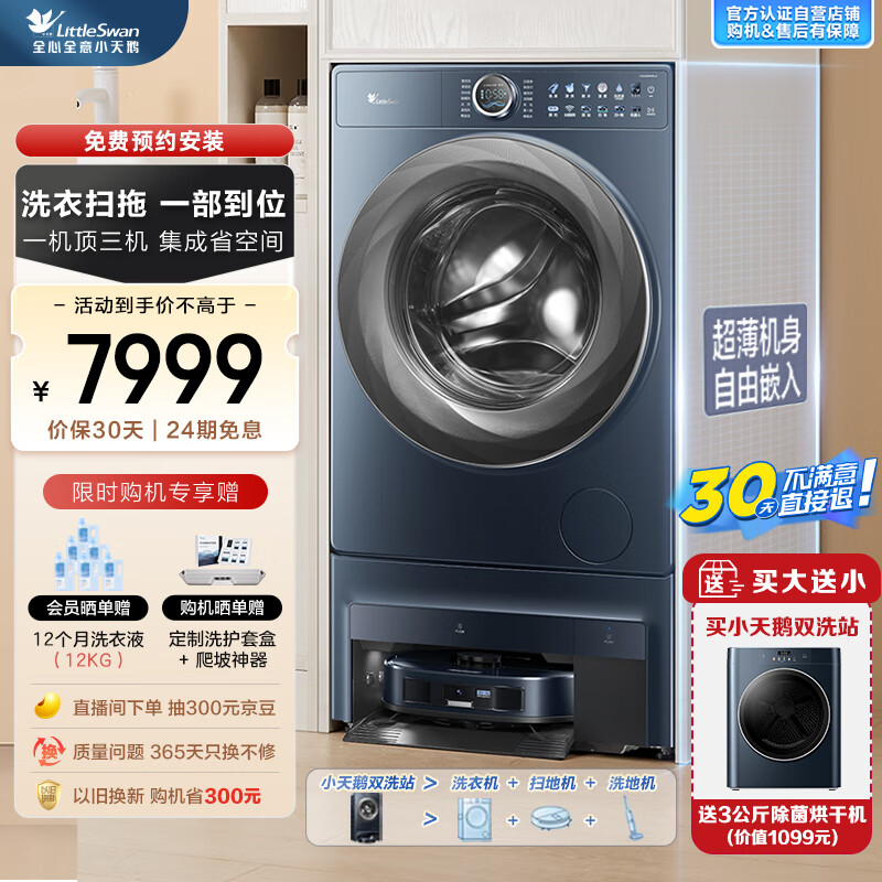 小天鹅(LittleSwan)【双洗站AIR】 洗衣扫拖一体 扫地机器人 滚筒洗衣机全自动 超薄全嵌10公斤 毛发切割 TG100RM9ILZ价格:7999.00元!
