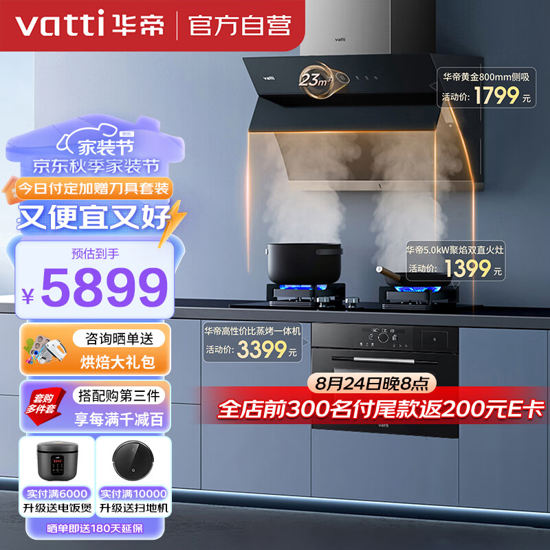 华帝(VATTI)小尺寸抽油烟机燃气灶具微蒸烤家用厨房三件套装侧吸式油烟机i11170+72B+23011(天然气)价格:5798.00元!