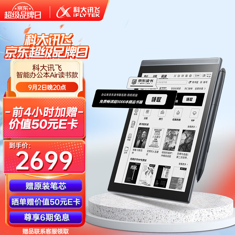 科大讯飞智能办公本Air 京东读书联名款 7.8英寸电子书阅读器 墨水屏电纸书 电子笔记本 语音转文字价格:2699.00元!