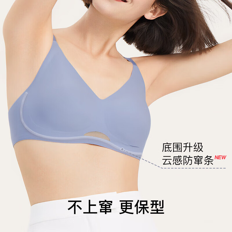 ubras无尺码女士内衣女无钢圈胸罩透气轻纱背勾文胸 椰青灰 经典款价格:117.00元!
