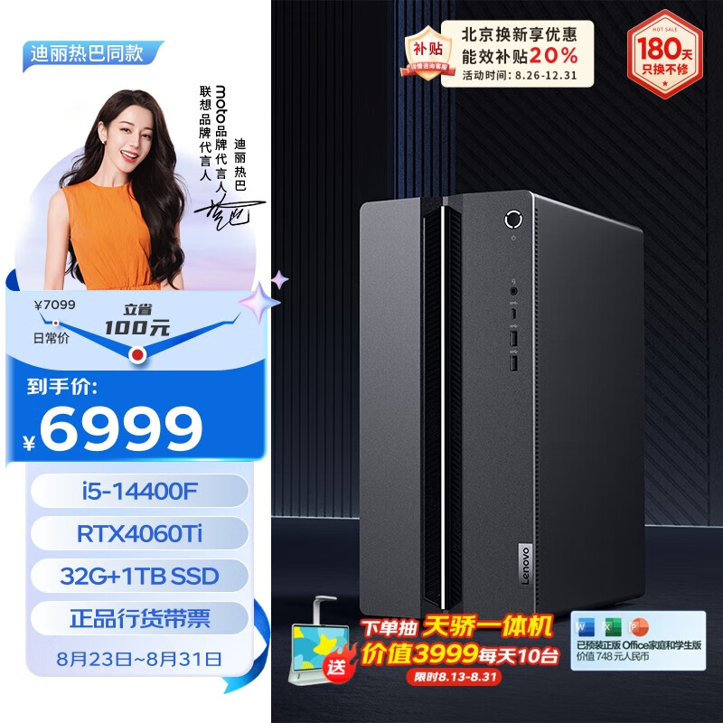 联想GeekPro畅玩黑神话悟空设计师游戏台式电脑主机14代i5-14400F RTX4060Ti 8GB显卡32G DDR5 1TB SSD价格:6999.00元!