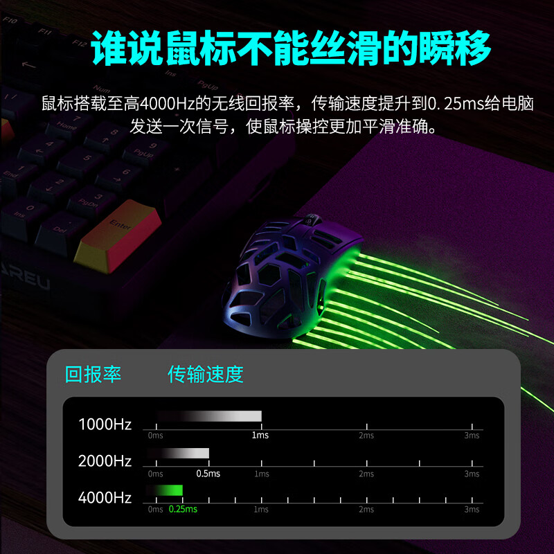 2、去年用的达尔优950,手感很好,玩游戏爆头几率都提高了。期间又使用了某国际品牌的,感觉好沉。这次达尔优出了升级的950pro,又是轻量化,4K倒不是我的必须。不管怎么样,先购为敬。中大手使用,鼠标运行丝滑。国产品牌,大有可为??