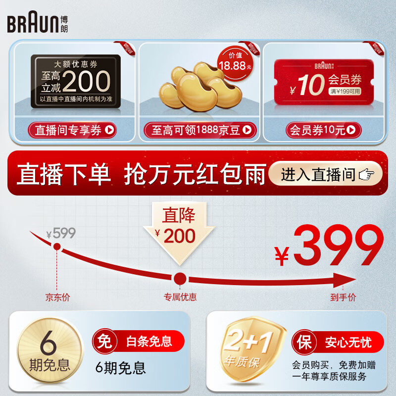 博朗(BRAUN)高效5系电动剃须刀刀头往复式刮胡刀电动男士男朋友生日礼物送老公价格:399.00元!