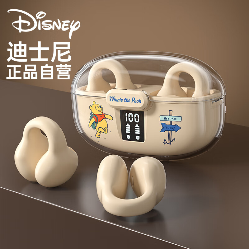 迪士尼(DISNEY)【LED屏显】蓝牙耳机 不入耳开放式 骨传导概念无线耳夹挂耳式 运动跑步降噪游戏J300【米色维尼】价格:98.90元!