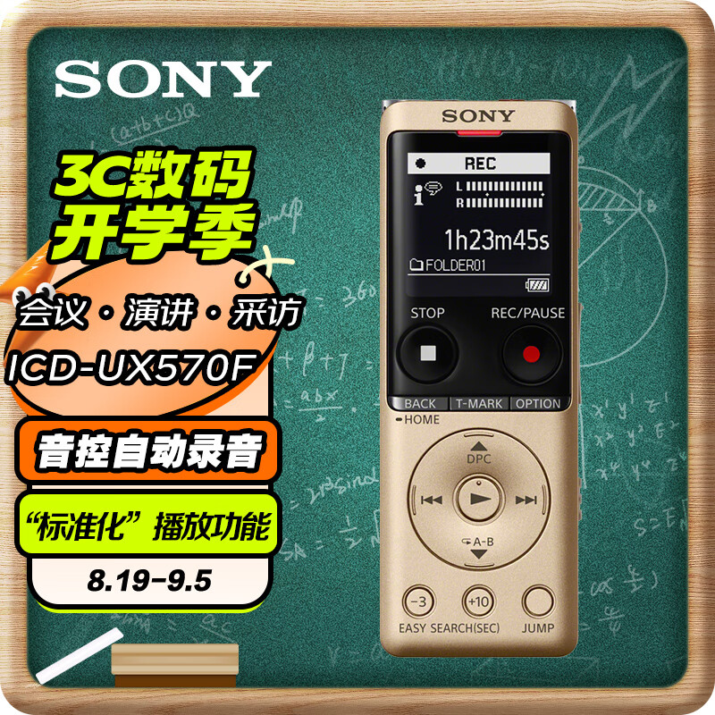 索尼(SONY)录音笔ICD-UX570F 4GB 金色 智能降噪升级款 专业线性录音棒 商务学习采访支持内录价格:799.00元!