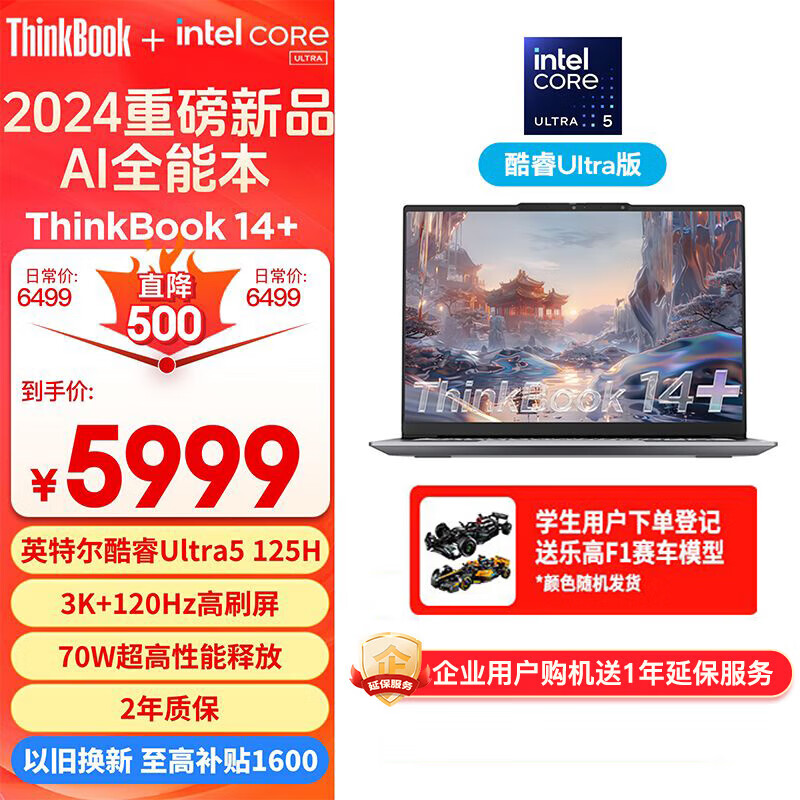 ThinkPad联想笔记本电脑ThinkBook 14+ 2024 AI全能本 英特尔酷睿Ultra5 125H 14.5英寸 32G 1T 3K 120Hz价格:5999.00元!