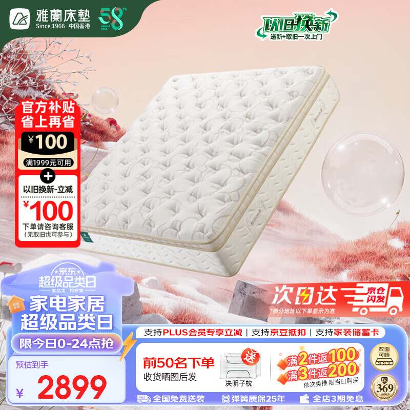 雅兰2CM乳胶床垫天丝?面料软硬双面独袋弹簧床垫 大小姐 1.5*2米价格:4899.00元!