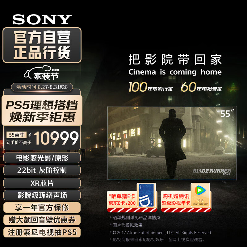索尼(SONY)55英寸 索尼电视7系 MiniLED 电影感光影/原彩 22bit灰阶控制 XR芯片 55XR70价格:10999.00元!