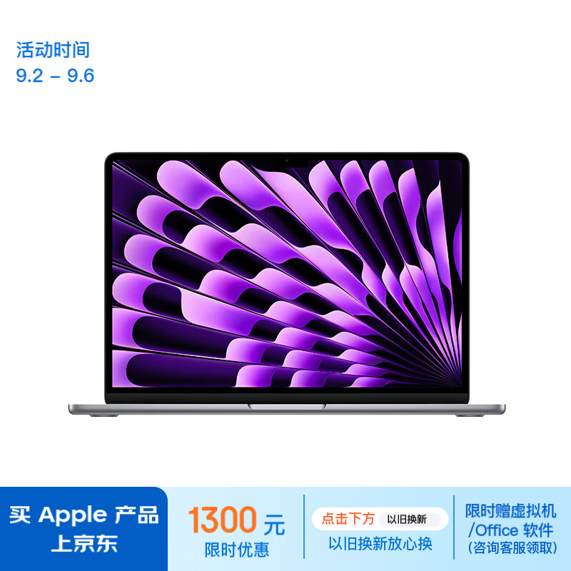Apple/苹果AI笔记本/2024MacBookAir13.6英寸M3(8+10核)16G1T深空灰电脑Z1G50003C【定制】价格:13499.00元!