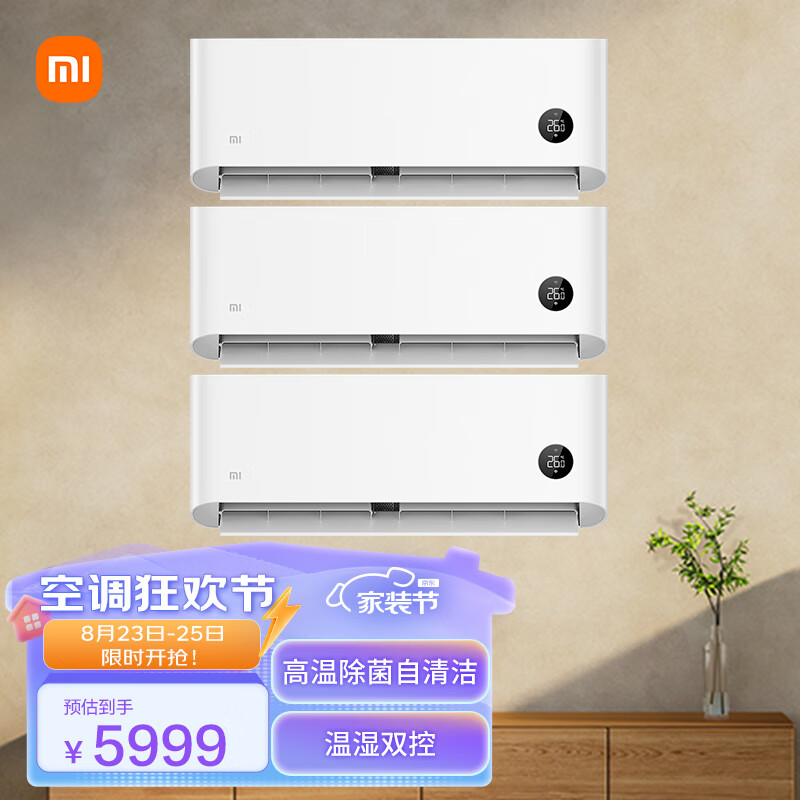 小米空调套装 巨省电3套挂机1.5匹+1.5匹+1.5匹 新一级能效 变频冷暖价格:5999.00元!