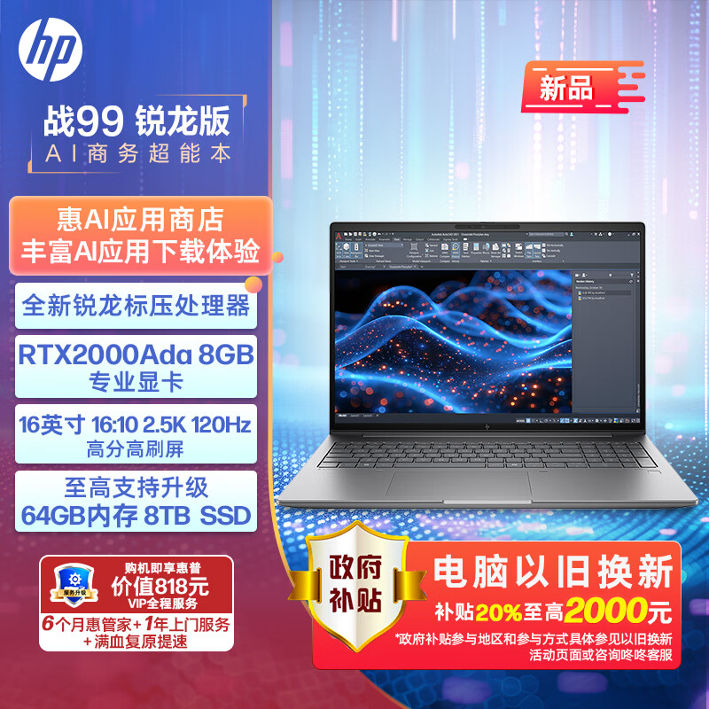 惠普(HP)战99 24款锐龙高性能笔记本AI电脑工作站 16英寸R9 Pro-8945HS 32G 1T RTX2000Ada 2.5K屏 Winpro价格:15499.00元!