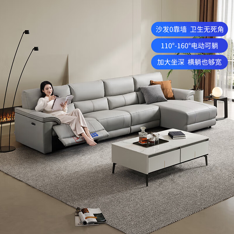 芝华仕(CHEERS)头等舱零靠墙真皮沙发功能家用芝华士客厅家具30196 灰四A价格:7949.00元!