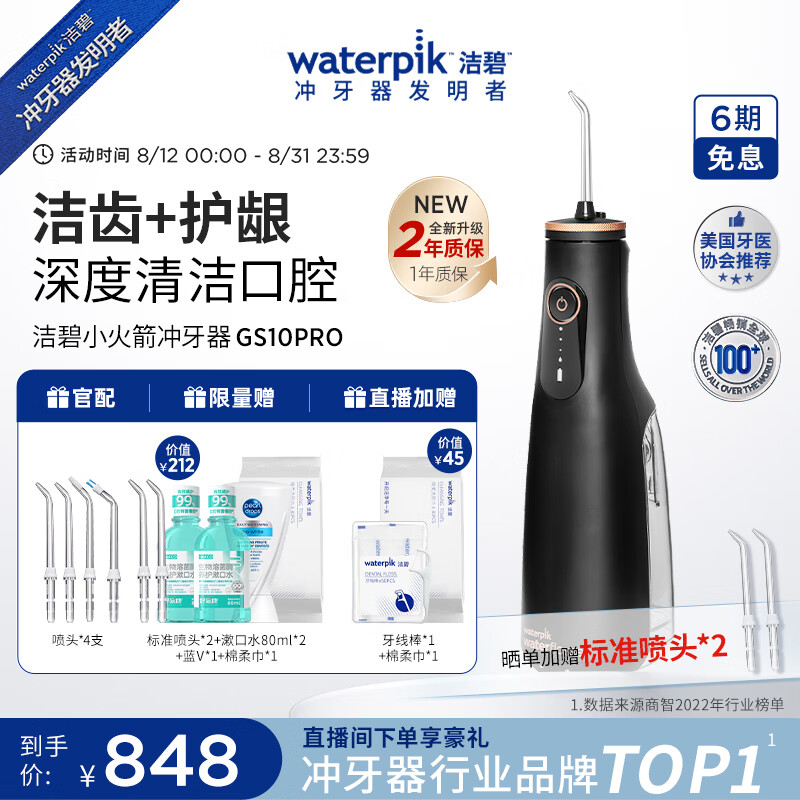 洁碧(Waterpik)冲牙器便携式电动洗牙器水牙线洁牙器预防牙结石全身水洗【小火箭】夜空黑价格:998.00元!