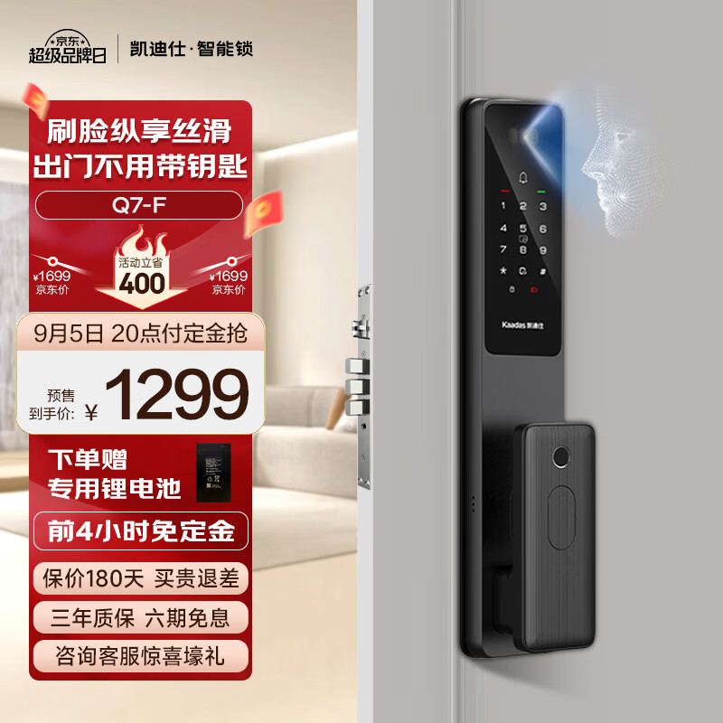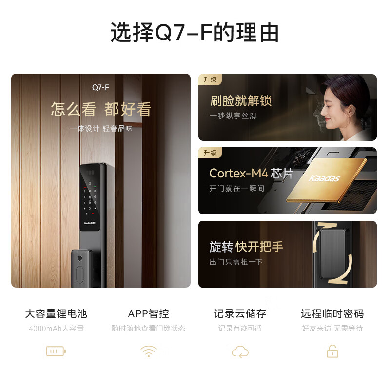 凯迪仕(kaadas)智能门锁人脸识别智能锁 指纹锁 防盗密码锁全自动电子锁Q7-F价格:1599.00元!