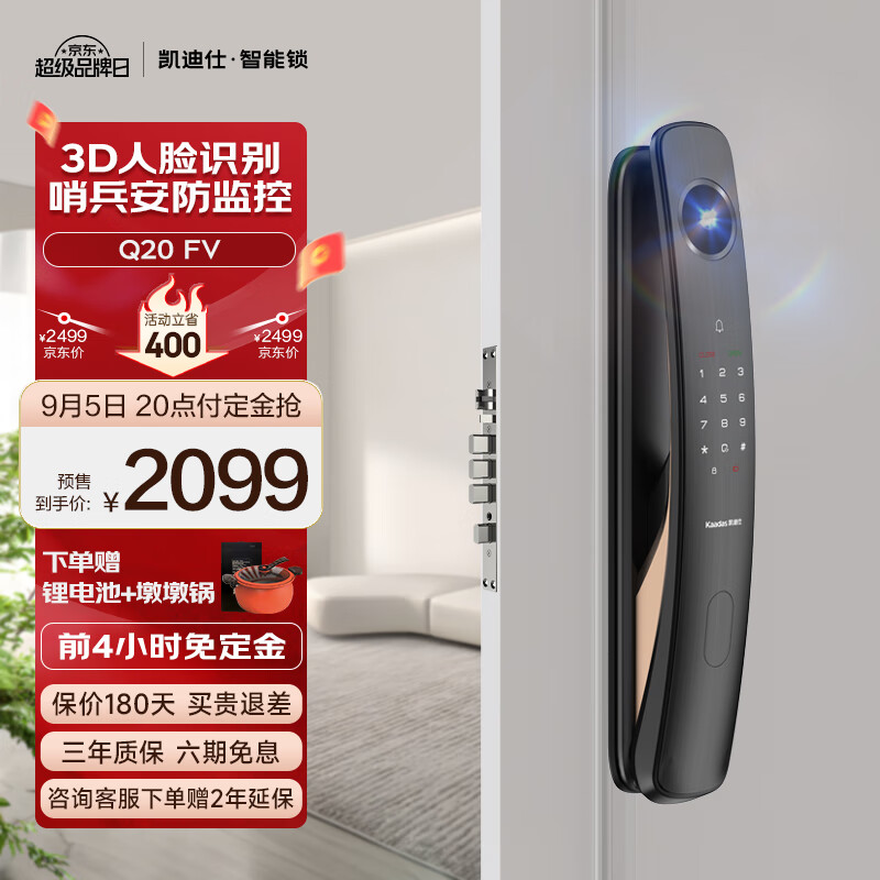凯迪仕(kaadas)指纹锁可视猫眼监控摄像智能门锁 人脸识别智能锁 Q20 FV价格:2269.00元!