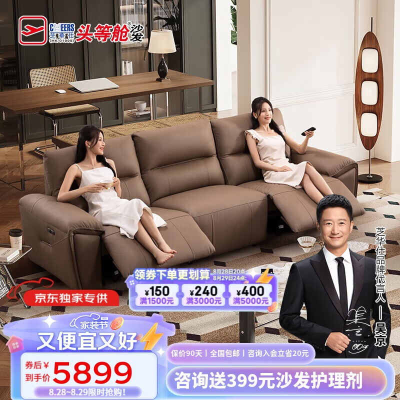 芝华仕(CHEERS)头等舱零靠墙真皮沙发美拉德复古功能直排客厅芝华士30269棕三价格:6299.00元!