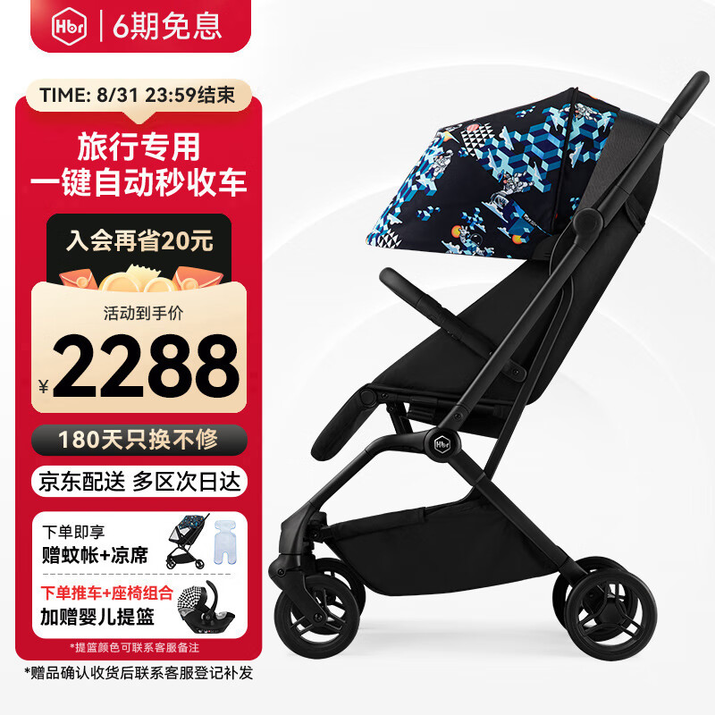 虎贝尔(HBR)婴儿推车轻便高景观婴儿车可坐可躺Mpro自动收车 迪斯科夜光-黑价格:2488.00元!