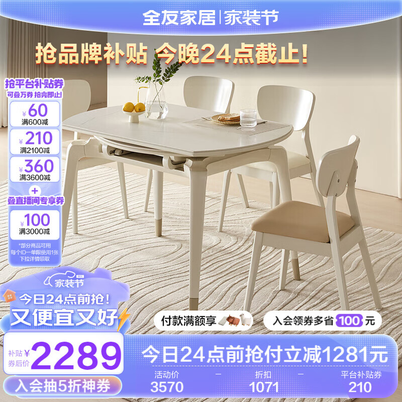 全友家居 餐桌现代简约岩板餐桌可圆可方伸缩功能吃饭桌子家具DW1121B价格:3570.00元!
