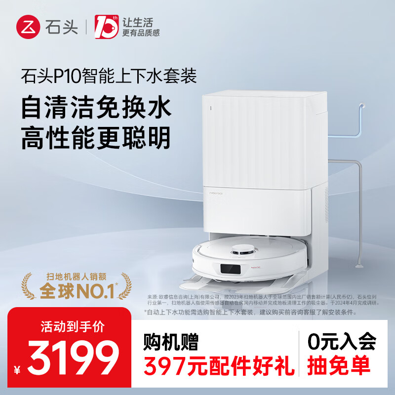 石头(roborock)扫地机器人扫拖一体 石头P10自动上下水扫拖洗烘一体机擦地机 自动清洗集尘烘干补水价格:3199.00元!