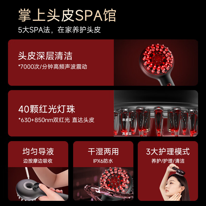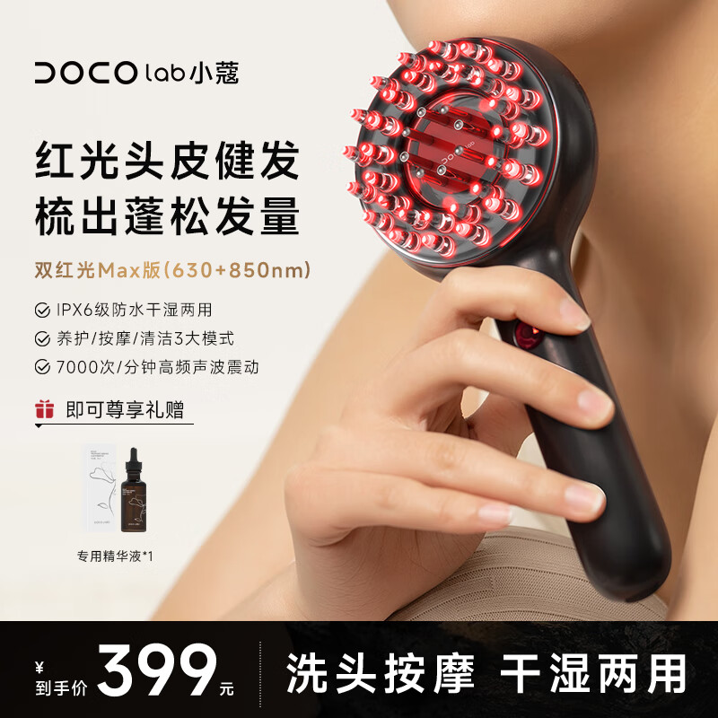 DOCO LAB红光生发梳健发梳头部电动按摩器按摩仪按摩梳头皮生发液上药器生发仪生日情人节礼物送女友男友价格:609.00元!