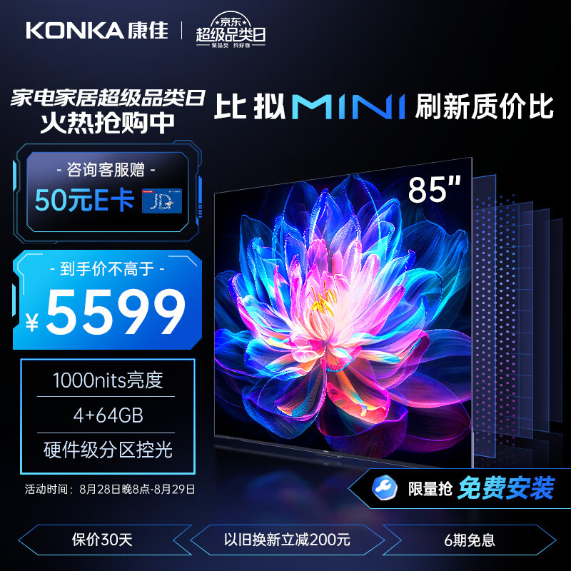 康佳电视 85G7 PRO 85英寸 百级分区 144Hz游戏电视 4+64GB 4K超清屏智能液晶平板电视机以旧换新价格:5299.00元!
