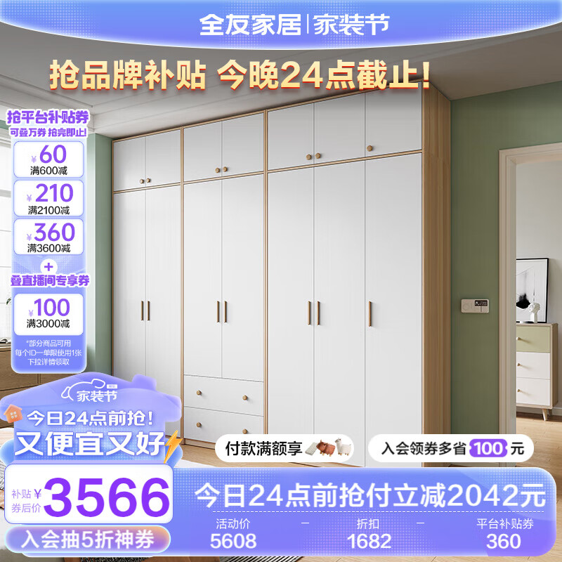 全友家居 现代简约衣柜顶柜组合收纳柜子落地衣橱卧室储物家具126331价格:5608.57元!