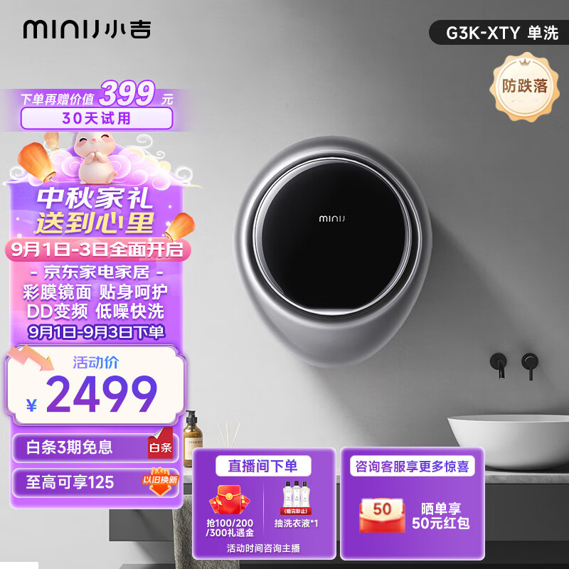 小吉(MINIJ)彩膜智慧大屏壁挂 迷你滚筒洗衣机全自动 DD直驱变频 专属母婴洗衣机 G3K-XTY价格:2499.00元!