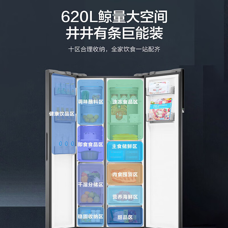 海尔冰箱620L巨能冻大容量对开大冷冻空间全空间保鲜风冷无霜一级能效冰箱BCD-620WLHSS19SGU1[家电]价格:8099.00元!