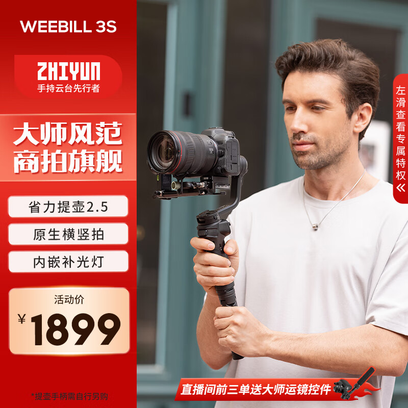 zhi yun智云 手持云台稳定器 相机微单单反稳定器防抖拍摄稳定器自拍杆 WEEBILL3S价格:1899.00元!