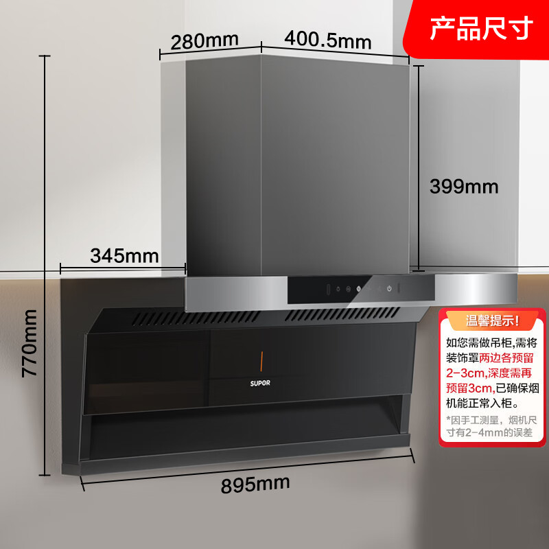 烟机安装尺寸:900±50mm