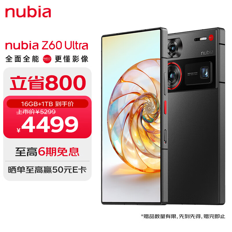 nubia 努比亚Z60Ultra屏下摄像16GB+1T 星曜 第三代骁龙8 三主摄OIS+6000mAh长续航 5G中兴手机游戏拍照价格:5299.00元!