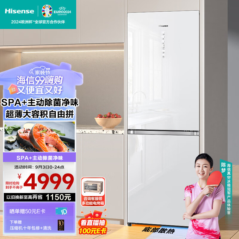 海信(Hisense)双门二门冰箱415升超薄嵌入式 无霜冰箱一级能效 保鲜变频BCD-415WTDGVBPIS1白色价格:5499.00元!