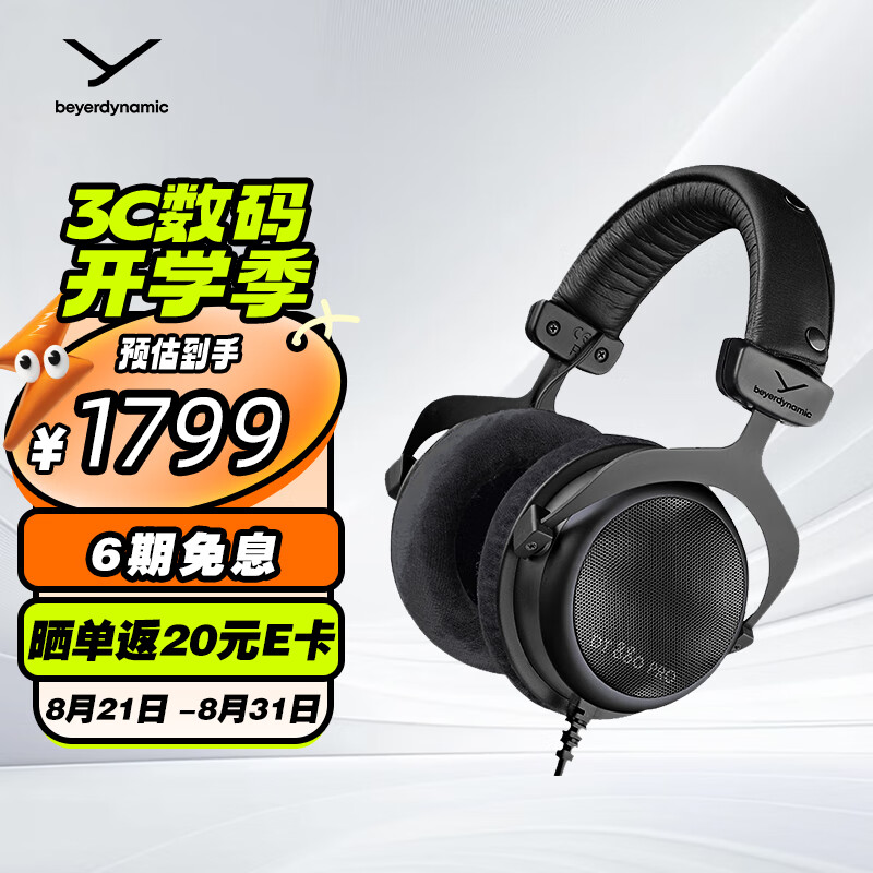 拜雅(beyerdynamic) DT880 PRO 头戴式参考级专业录音室半开放式监听耳机 250欧姆黑色特别版价格:1999.00元!