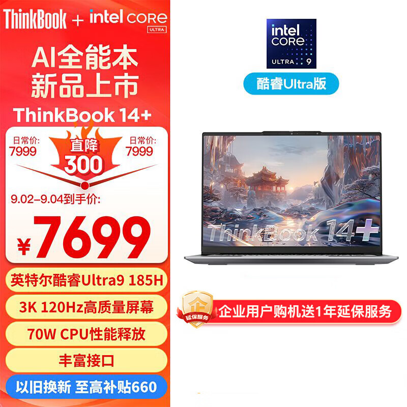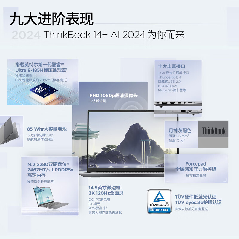 ThinkPad联想笔记本电脑ThinkBook 14+ 2024 AI全能本 英特尔酷睿Ultra9 185H 14.5英寸 32G 1T 3K 120Hz价格:7699.00元!