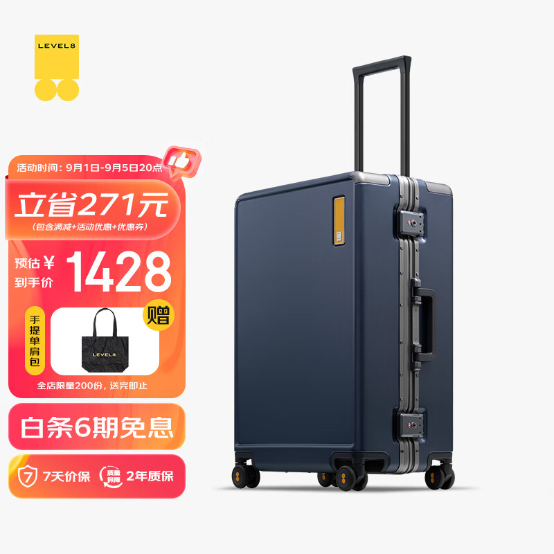 地平线8号(LEVEL8)行李箱男女粗铝框旅行箱24英寸拉杆密码箱PC拉杆箱氦系列蓝色价格:1699.00元!