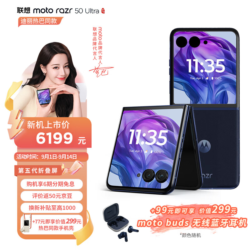 摩托罗拉 联想moto razr 50 Ultra 第五代折叠屏 4吋无界大外屏 双卡 5G手机 AI元启版 12+512GB 复古丹宁价格:6199.00元!