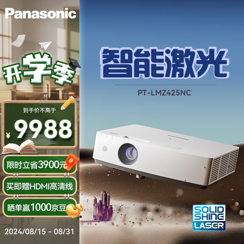 松下PT-LMZ425NC智能激光投影仪家用办公白天会议室专用家庭影院培训教学商务机(WUXGA 4500流明)价格:13888.00元!