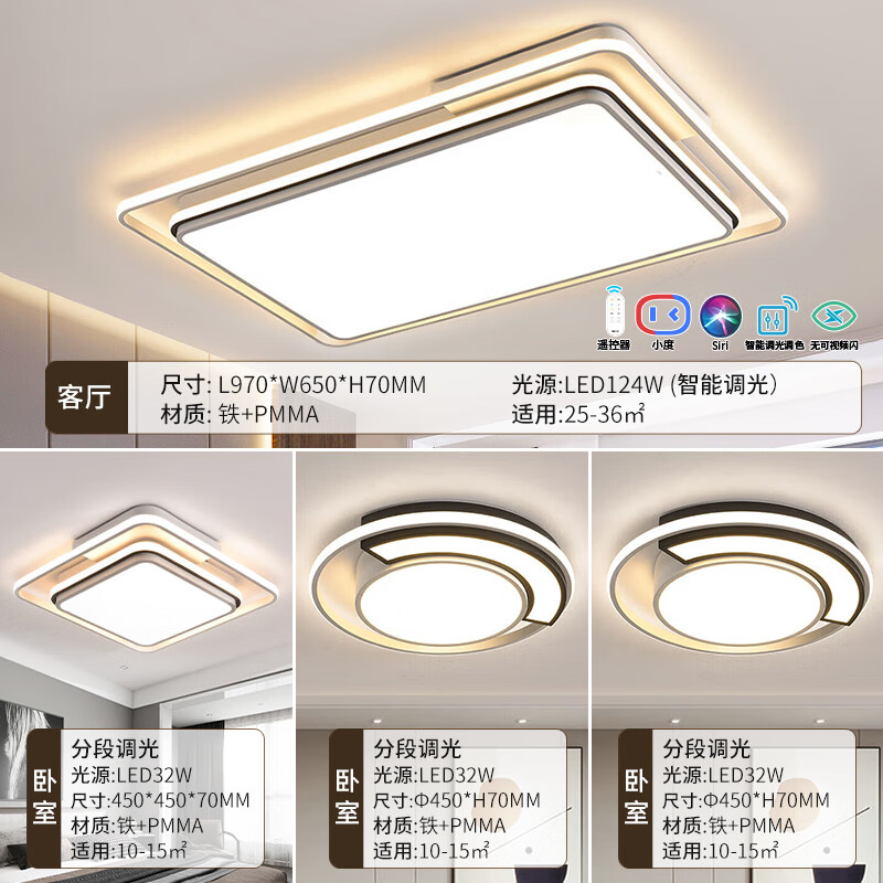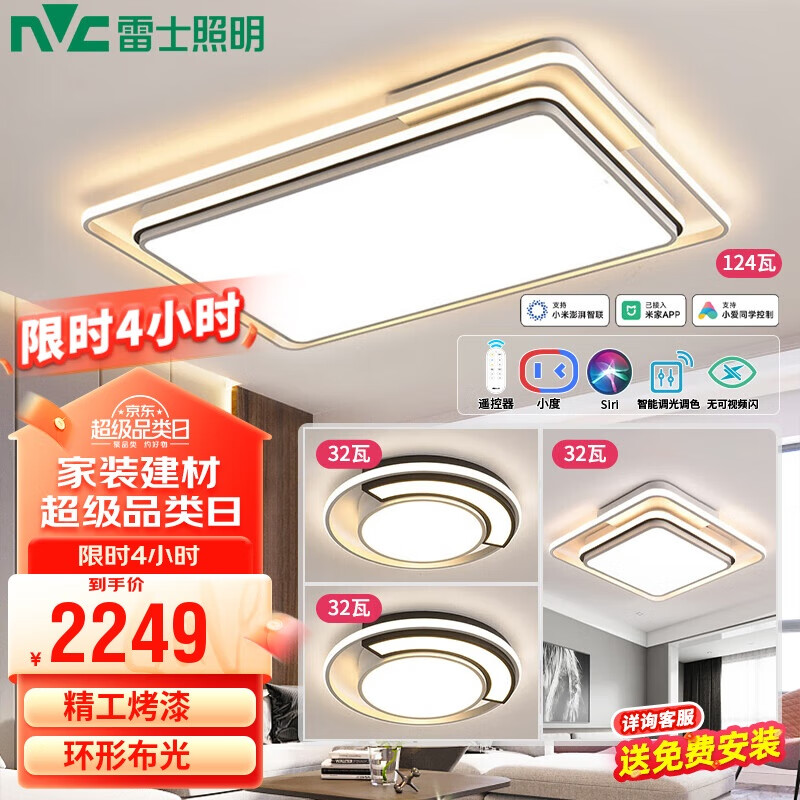 雷士照明(NVC)LED室内吸顶灯客厅大灯现代简约卧室书房灯饰灯具套餐三室一厅价格:3299.00元!