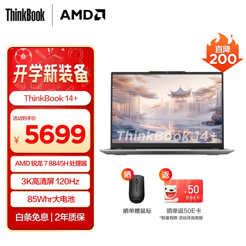 ThinkPad联想ThinkBook16+/14+ 锐龙版标压处理器 轻薄商务办公笔记本电脑 高清屏120Hz刷新率 R7-8845H 32G 1T 14.5英寸升级价格:5899.00元!