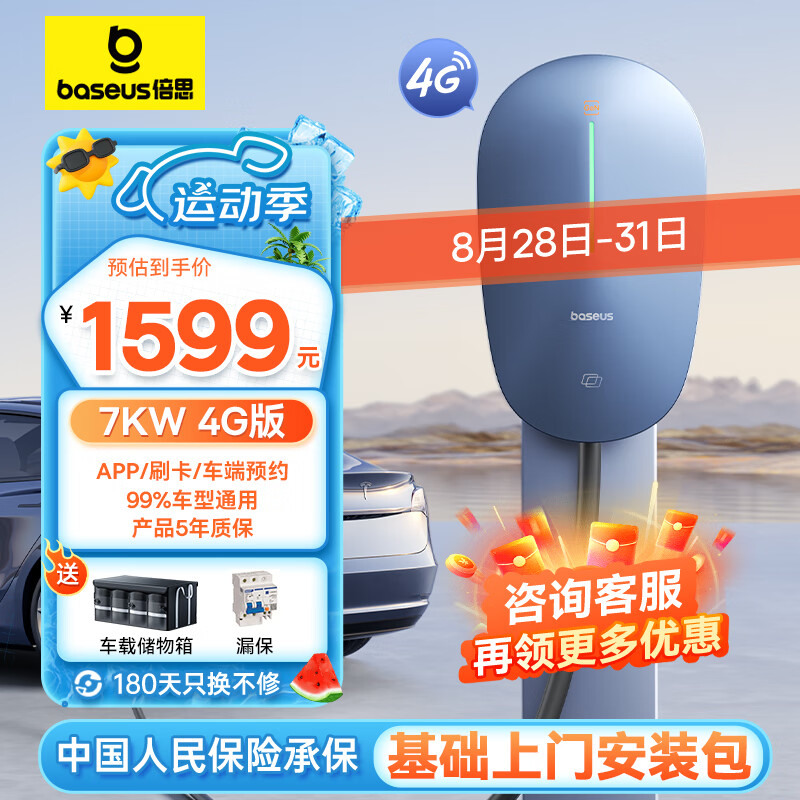 倍思4G星云7KW新能源汽车充电桩(送装一体)含0米基础安装 适用特斯拉问界极氪大众比亚迪理想充电枪价格:4009.00元!