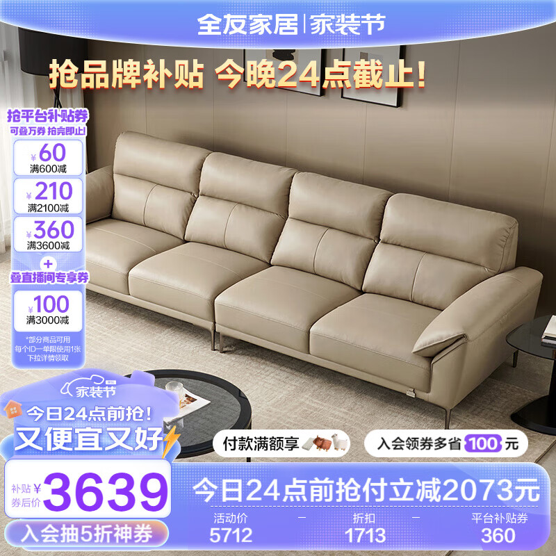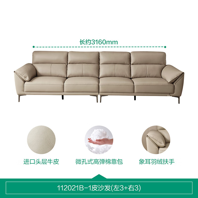 全友家居 现代简约头层牛皮直排大象耳朵大户型真皮艺沙发客厅112021价格:5712.86元!