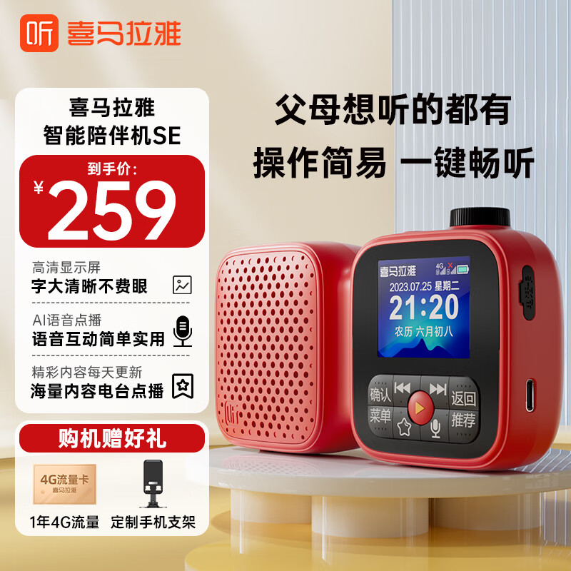 喜马拉雅好声音陪伴机SE智能户外便携轻巧网络FM收音机4G语音播报多功能一体故事机老人专用海量内容随身听价格:319.00元!